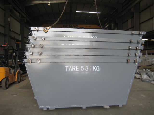 2m3 crane bin tested to 5 tonne